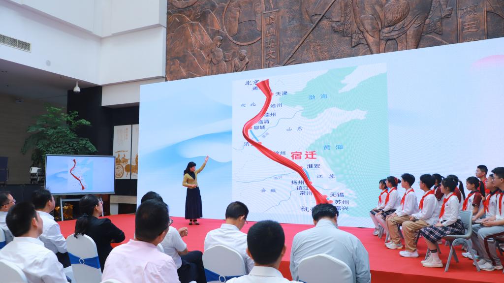 在中学段,宿迁市苏州外国语实验学校胡灵芝老师以“因水而兴·酒韵华章”为题,依托“九孔双流壶”“双沟醉猿”化石等文物,解码宿迁酒文化基因。通过“大运河味道”调酒实验,引导大中小学生体悟文化传承与创新。在小学段,宿迁市苏州外国语实验学校张莉莉老师以“因水而生·‘迁’年一脉”为题,通过“中华第一灶”“下草湾人股骨”等文物,解码八千年农耕文明密码。借助AI技术对话清代治水名臣靳辅,解析治水智慧。市博物馆讲解员王笑维图说城市变迁情景,生动诠释“众志成城、守正创新”的治水精神。